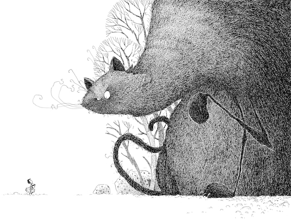 Dette er altså en kunstnerisk bok på mange måter, både i tekst og illustrasjon. Fortellingen er kanskje litt vel tydelig, men kompleks og uforutsigbar. Tematikken og innholdet er heller tungt. Treffer den barna? Selv om boka lay-out-messig er luftig, er den ikke spesielt lettlest. Språket virker noe gammeldags, og krever konsentrasjon. Men språket byr også på noen effektive og vakre beskrivelser, som disse, av henholdsvis jenta og katten.